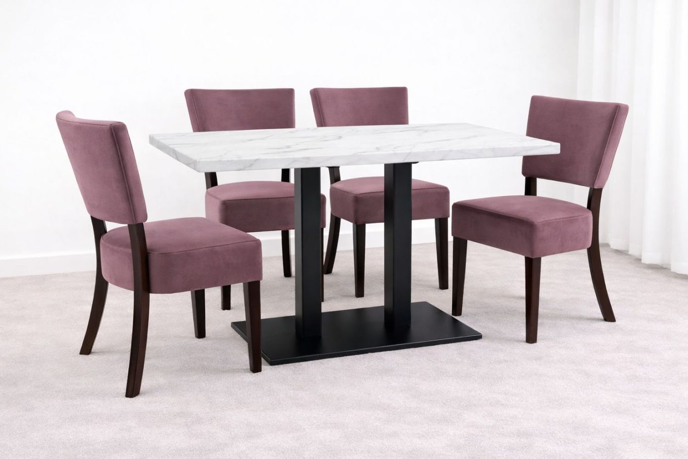 Der Gastrostuhl Carlos mit weichem Samtbezug verleiht Ihrem Gastraum einen eleganten und wohnlichen Charakter. In Kombination mit dem Gestell aus massivem Buchenholz entsteht ein stilvoller Akzent für Restaurants, Cafés oder Hotelbereiche.Sitz & Rücken mit Samtstoff bezogenFarbton: Schwarz – zeitlos & elegantGestell aus massivem BuchenholzKompakte Form – ideal für enge RäumeWeich gepolstert & komfortabelFür den Einsatz im InnenbereichMaße:Länge: 43 cmBreite: 43 cmHöhe: 84 cmHinweise:Aufgrund der Bildschirmdarstellung kann die Abbildung leicht vom Original abweichen.